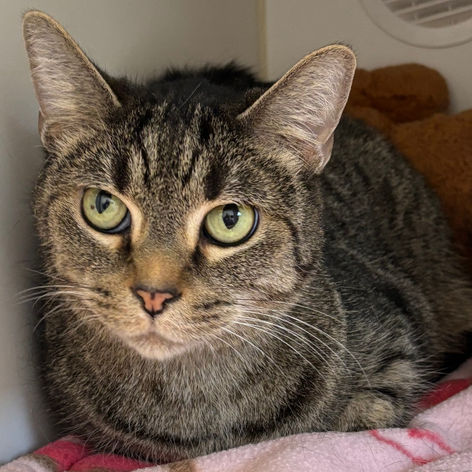 Hi there, I'm Hedwig! I am a soft, sweet, snuggly tabby boy who gets TOP SCORES for affection! (That's a really big deal!) Because of that and my laid back nature, I'd be really good with kids. I like being picked up and held and if you tap and point to your lap, I'll sit on your lap so be ready to sit for a while! I love being brushed and don't forget my cheeks please. Rubbing my belly, face, nose, sides of my lips are all "Yes, please!" I like to play a little - mostly string and a splash of catnip. But I'm really made for chillin' and lovin'. I'll be your best boy!